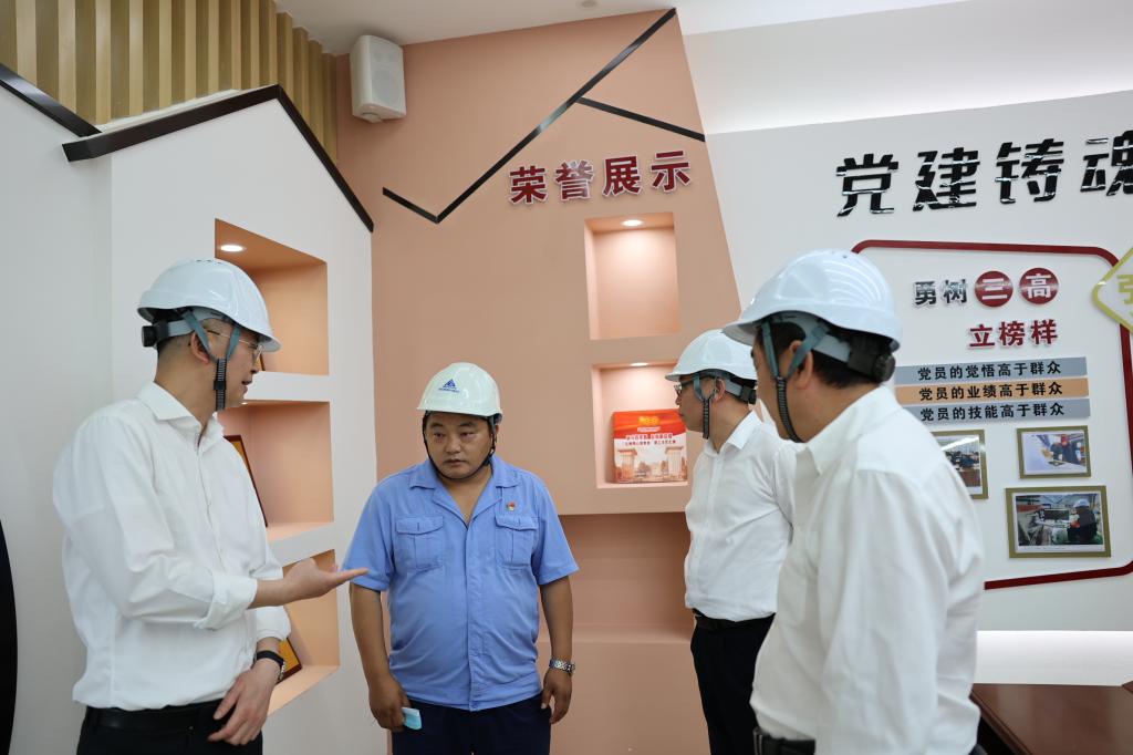 “車間機構是怎么設置的,有多少職工,多少名黨員,黨支部是怎么融入抓生產經營的?”“工段長、班組長和普通職工的收入是怎么考核分配的,薪酬分配差距是多少?技師和高級技師的薪酬待遇是多少?”“專業技術人員、各工種職數是怎么配置的?”“車間生產工藝是什么樣,在行業內處于什么水平?”“車間生產成本結構是怎么構成的,成本考核是怎么層層壓實分解的?”在金竹山資源再生車間,胡均邊聽取匯報邊提問,詳細了解廢石資源回收工藝技術、設備運行和主要創新點、人員結構、班組數量、員工收入等情況,要求華聯鋅銦抓好廢石綜合回收項目的達產達標工作,發揮國內首個廢石綜合回收產業化建設項目的標桿示范作用;繼續保持創新精神,抓好科技創新、管理創新、實現經濟創效;進一步加強和完善“四通道”職業晉升體系和產業工人晉升職級的建設,激發基層單位干事創業的組織活力。