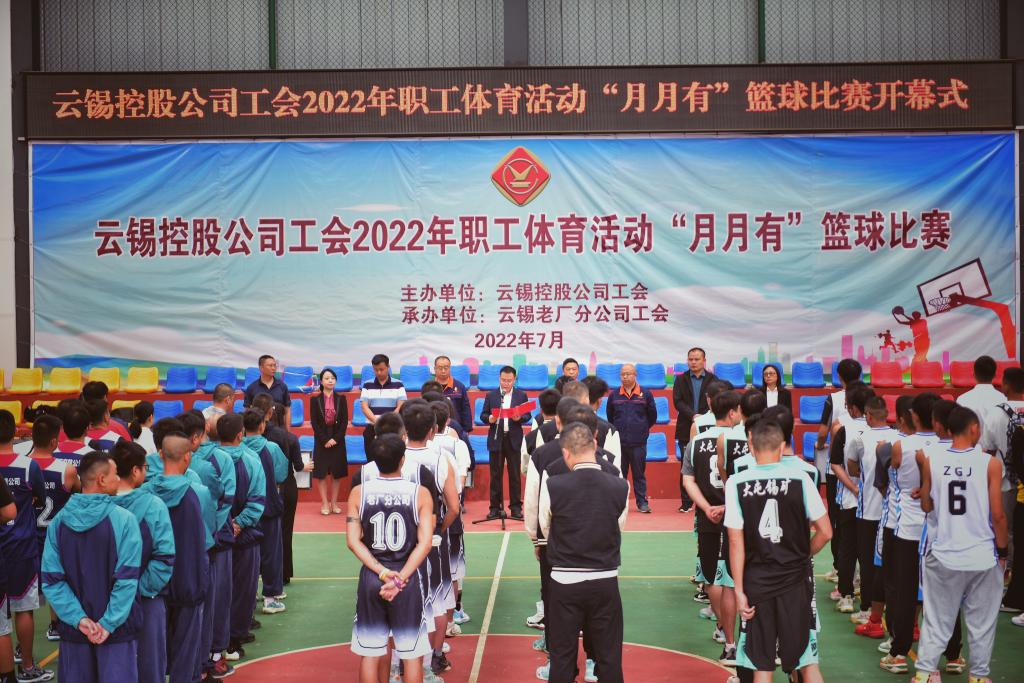 7月22日,由控股公司工會主辦、老廠分公司工會承辦的云錫職工體育活動“月月有”之籃球決賽開幕式在老廠分公司職工體育活動中心舉辦。控股公司黨委副書記、工會主席姚家立出席開幕式并致辭。