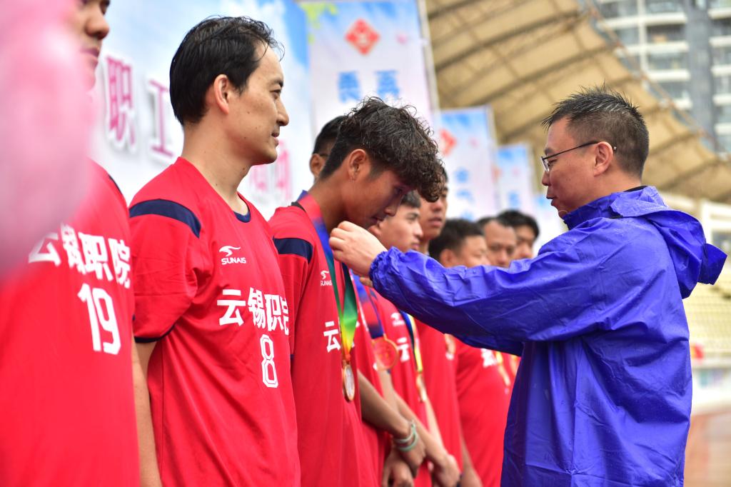 8月26日,由云錫控股公司工會主辦、銅業分公司工會承辦的2022年職工體育活動“月月有”足球決賽閉幕式在個舊市體育場舉辦。控股公司黨委副書記、工會主席姚家立出席決賽,并為獲獎的運動員頒獎。