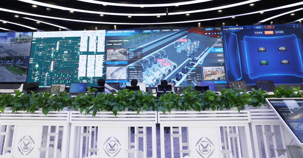 工廠車間里,中控顯示屏上,生產數據實時傳送,設備運轉立體呈現,整個工藝流程各種性能參數盡收眼底,操控信息一目了然。