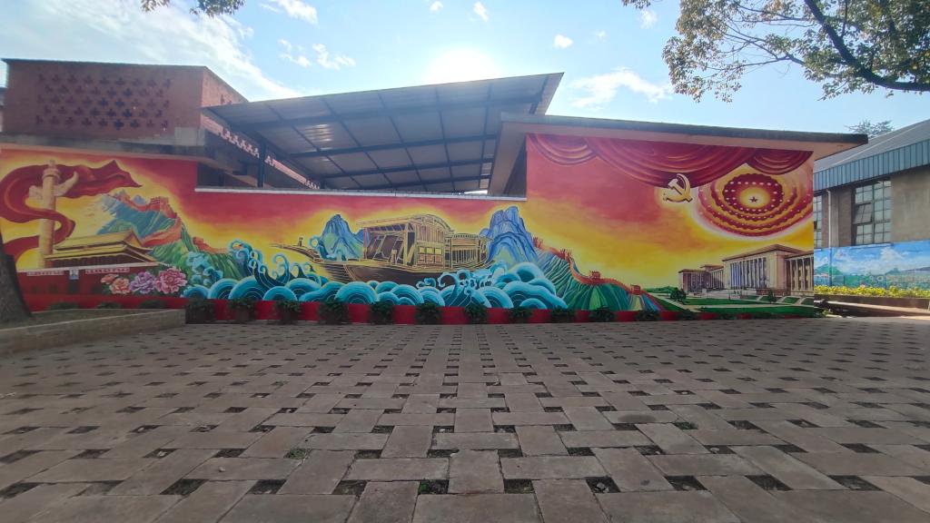 綠樹成蔭的小路,成片的格桑花,爭相怒放的金黃小菊花,充滿寫實浪漫的山水畫,大屯錫礦選礦車間以“綠水青山就是金山銀山”的發展理念打造花園式工廠,用人與自然的和諧相處詮釋了發展與生態的關系,組織職工親手繪就了“錫強有我”文化墻,講述了云錫發展故事。