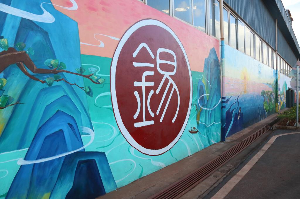 一步一景,十步一故事,文化墻講述的不僅是云錫的發展史,更是一個時代的縮影。曾經的紅磚石墻“搖身一變”實現了“顏值”“內涵”的雙提升,一個一個串起來的小故事述說著選礦人特有的精氣神,這些故事匯聚成了一種開天辟地的力量,一種紅色的信念,一種云錫人敢闖敢拼的不服輸韌勁。文化墻不僅扮靚的是廠房的外墻,更是選礦車間的一張美麗名片,受到高度贊揚的同時,起到了潤物細無聲的作用,通俗易懂的畫面、定格的故事情節用無聲的傾述傳遞著錫強必定有我的精神!