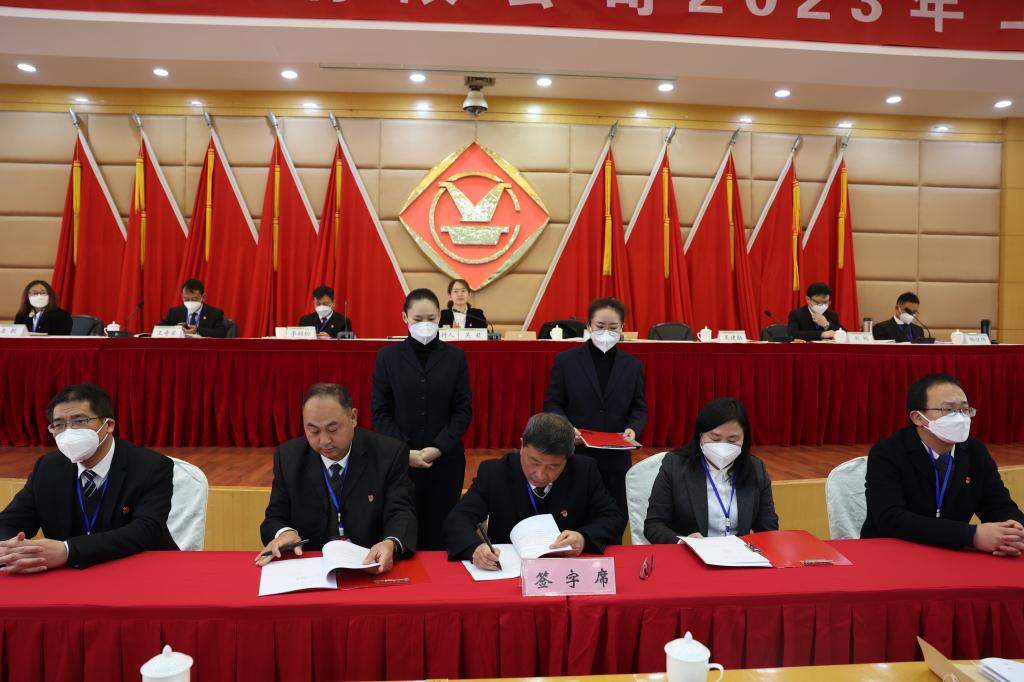 會議簽訂了2023年單位負責人經營業績目標責任書。書面報告了《云錫股份公司2022年預算執行情況暨2023年預算安排報告》《云錫股份公司工資總額管理辦法》《云錫股份公司中層管理人員經營業績考核及薪酬管理辦法》。