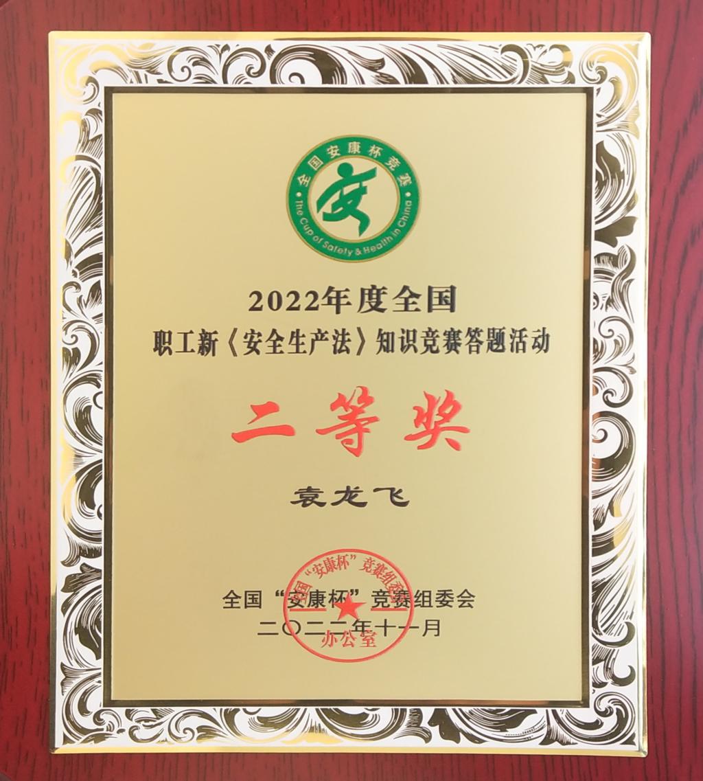 經云南省總工會推薦,全國“安康杯”競賽組委會審核,控股公司工會獲全國職工新《安全生產法》知識競賽答題“優秀組織單位”榮譽稱號,是云南省的7個獲獎單位之一,是云南省屬企業工會中的唯一獲獎單位。另外,錫化工公司職工袁龍飛榮獲知識競賽答題活動個人“二等獎”。