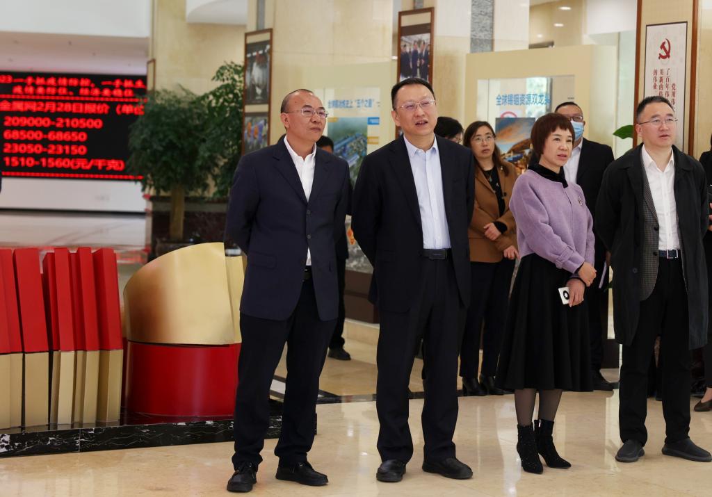 會前,黃韶宇一行觀看了云錫宣傳片和全產業鏈數字化運營管控展示系統,參觀了黨建文化展廳。