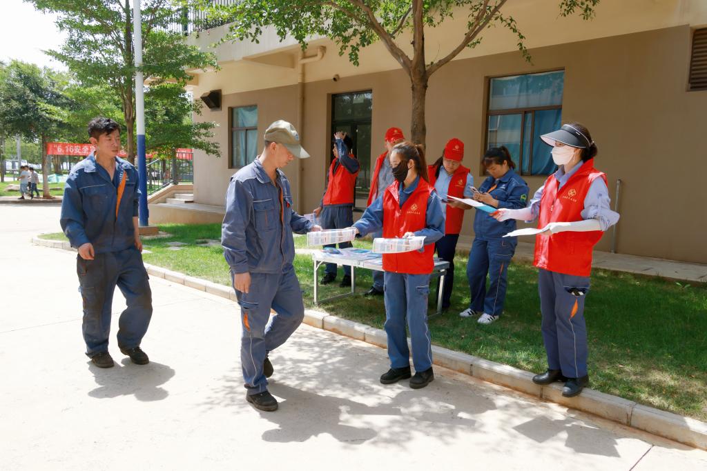 大屯錫礦安全環保部、黨委工作部、云錫應急救援隊等多部門聯動,通過設置咨詢臺、懸掛橫幅、發放安全生產知識手冊、擺放科普展板等形式,在甲介山候車站組織開展“6?16”安全宣傳咨詢日活動,多角度宣傳安全生產知識,有效防范各類事故發生。在活動現場還開展了有獎問答活動,“2023年安全生產月活動主題什么?”“大屯錫礦的安全方針是什么?”“人員觸電怎么辦?”……活動現場職工群眾熱情參與,情緒高漲,安全感、獲得感得到提升,大力營造了關注安全環保、關愛生命健康的濃厚氛圍。此次活動共發放宣傳資料500余份,擺放雙面宣傳畫展板8塊,懸掛宣傳橫幅1條。(蘇永武)