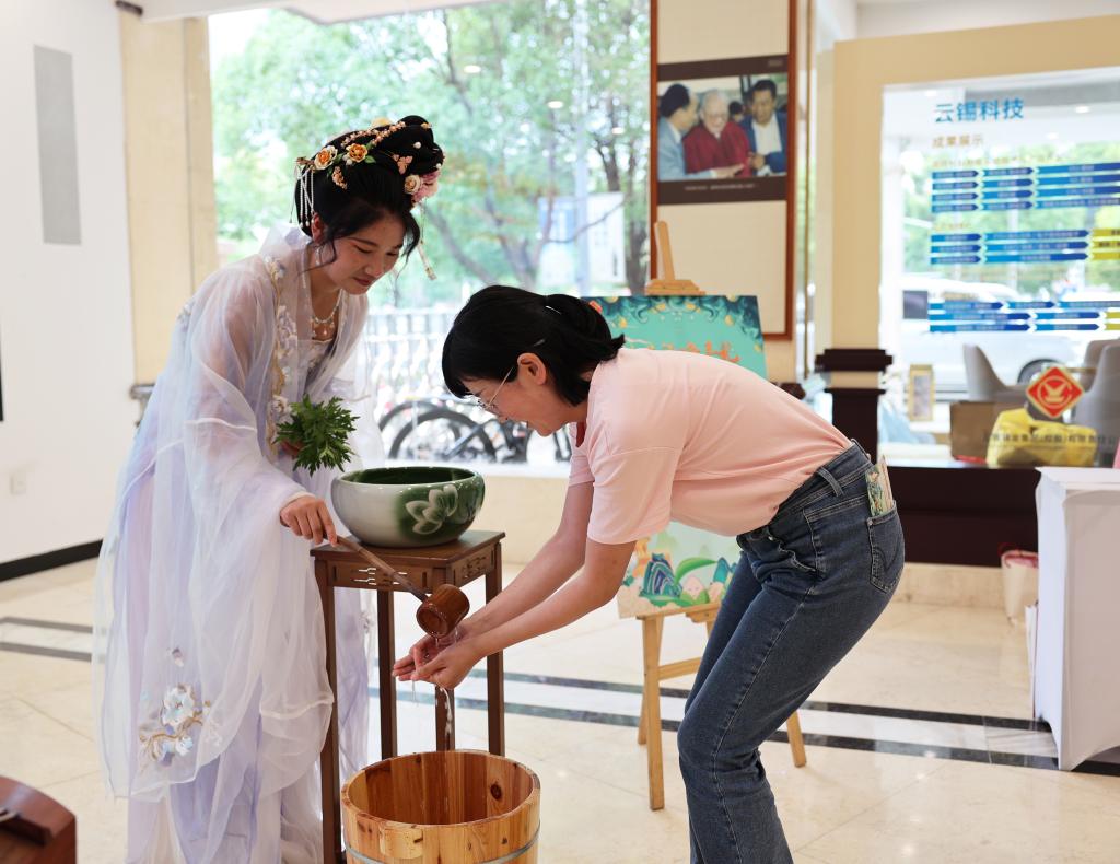 取一勺蘭湯凈手,以取驅除晦氣,平安健康之意,大家浸潤于傳統習俗的美好寓意中,在儀式感的流程中感受端午特有的氣氛。