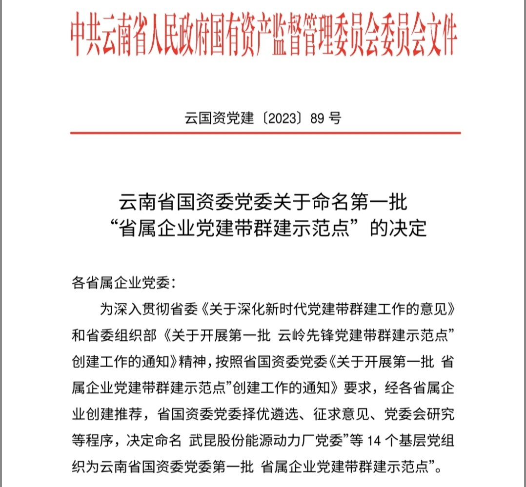 近日,云南省國資委黨委辦公室發布了《云南省國資委黨委關于命名第一批“省屬企業黨建帶群建示范點”的決定》,云錫錫業分公司黨委成功入選云南省國資委黨委第一批“省屬企業黨建帶群建示范點”名單。