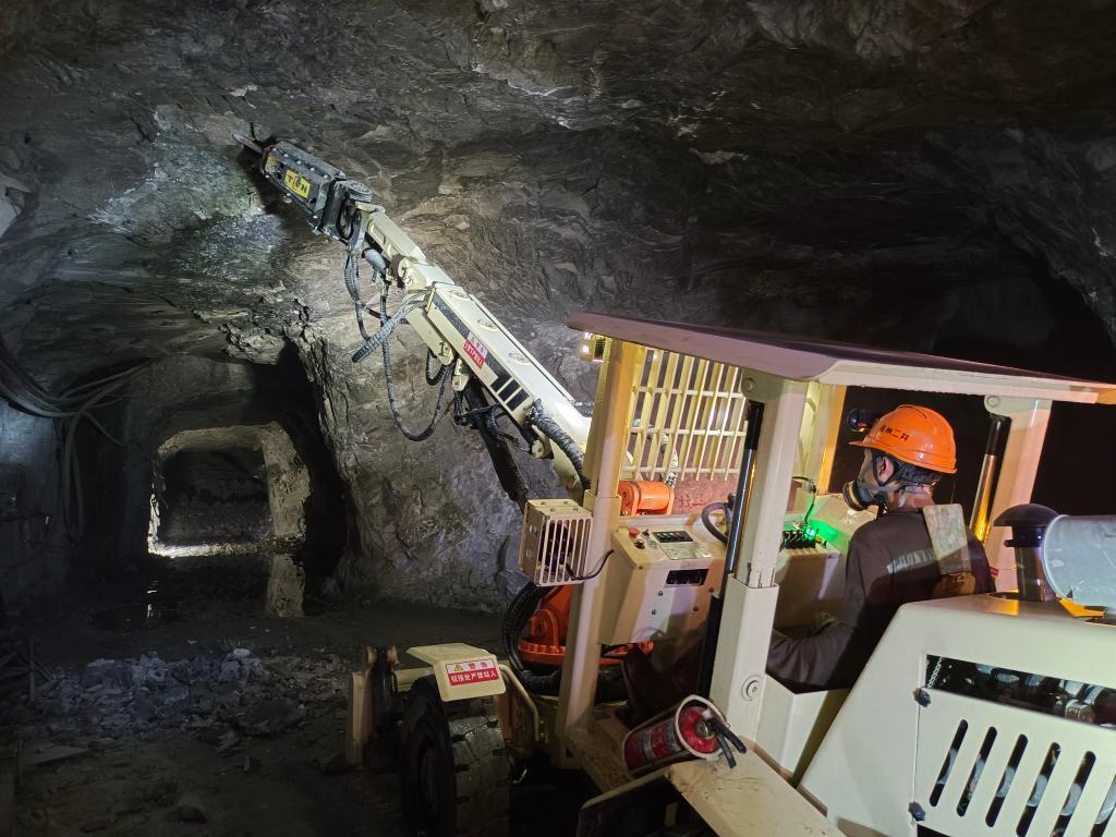用對“方子”,確保提質增效展作為。積極探索優化生產工藝、提高生產效率的方式方法,不斷推廣使用新技術、新工藝、新設備,降低安全風險和作業人員勞動強度,提高作業人員勞動生產率。對礦體開采技術條件進行分析研究,優化設計采礦方案并施工相應工程,部分作業點有底部結構分段空場法成功運用,提升回采作業安全性,同時利用履帶式中深孔臺車施工中深孔提升效率,采用中深孔爆破,提升采場產能,降低貧化損失率。優化通風系統、供水系統,提高供水效率、通風效率,持續優化作業環境;引進ZDY2300LPS-BN礦用履帶式全液壓坑道鉆機、錨桿臺車、撬毛臺車、破碎臺車等新設備及新型數碼電子雷管等,最大限度發揮機械化效果,降低作業人員安全風險和勞動強度,提高勞動生產效率。