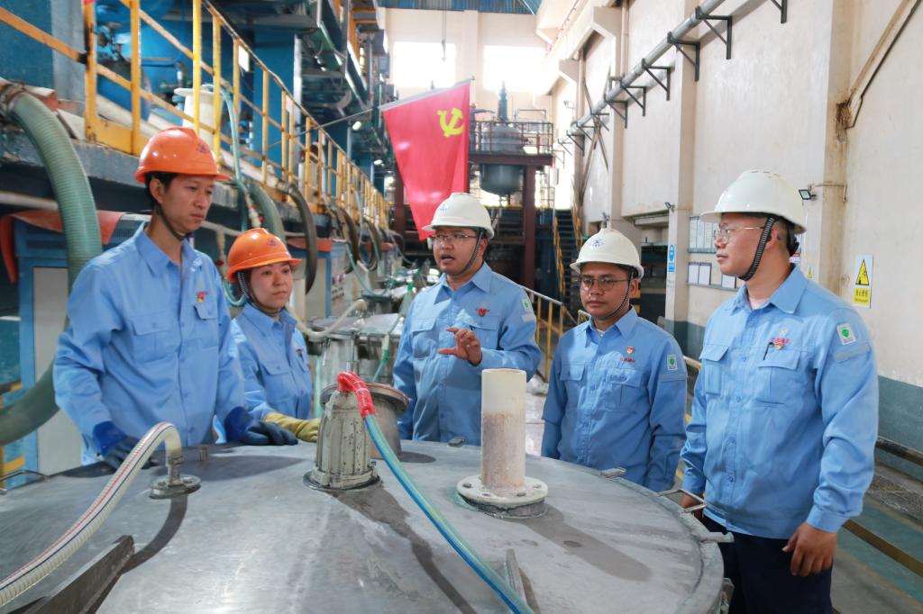 小組夯基關鍵點、穿好解難破題“協同線”。堅持品牌維護,聚焦質量效益提升,創新實施“黨小組+班組”雙細胞工程,推動“6有6無6到位”標準班組建設,讓黨組織“最小細胞”和車間管理“最小單元”實現黨建業務雙融合工作面,發揮黨員示范帶動作用,持續完善班組定崗定責,對生產人員進行精細化管理,促進工作崗位上的“新、老”協同;利用自動化、智能化、信息化等手段監督引導職工自覺遵守生產規范標準,促進生產線上的人機協同作業,實現人均產量增長22.4%。緊扣“零浪費、高效率,優質量、零缺陷”目標,堅持“質量是干出來的,不是檢出來的”,從產品生產最前沿的“班組”入手,從質量管控的人機“環節”著手,不斷探索“黨小組+質量”工作模式,落實黨員牽頭完善更新設備操作規程,優化作業指導書,扎實推進設備包機制,把控好現場“人、機、物、法、環”五個要素,搞好生產過程質量現場管理控制,以“小組滲透、人機協同”把質量管控從“事后把關”變為“事前控制積極預防”,今年以來從11個方面對產品質量進行改進提升,質量異議較去年同期減少41.7%,有效維護“云錫”無機錫產品品牌形象。