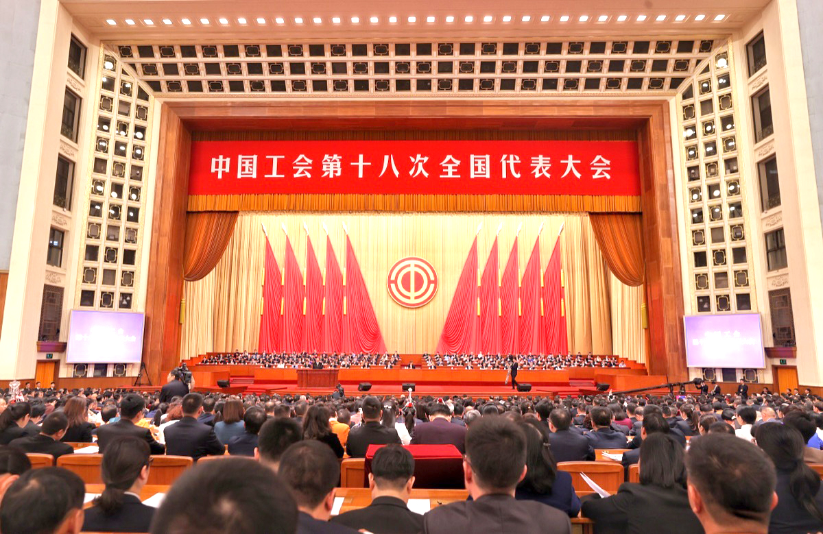 中國工會第十八次全國代表大會10月9日上午在北京人民大會堂開幕。出席此次會議的共有來自全國各地工會,鐵路、民航、金融工會,中央和國家機關工會聯合會的35個代表團、2002名代表。此外,還有約60名特邀代表、50名港澳來賓出席大會。