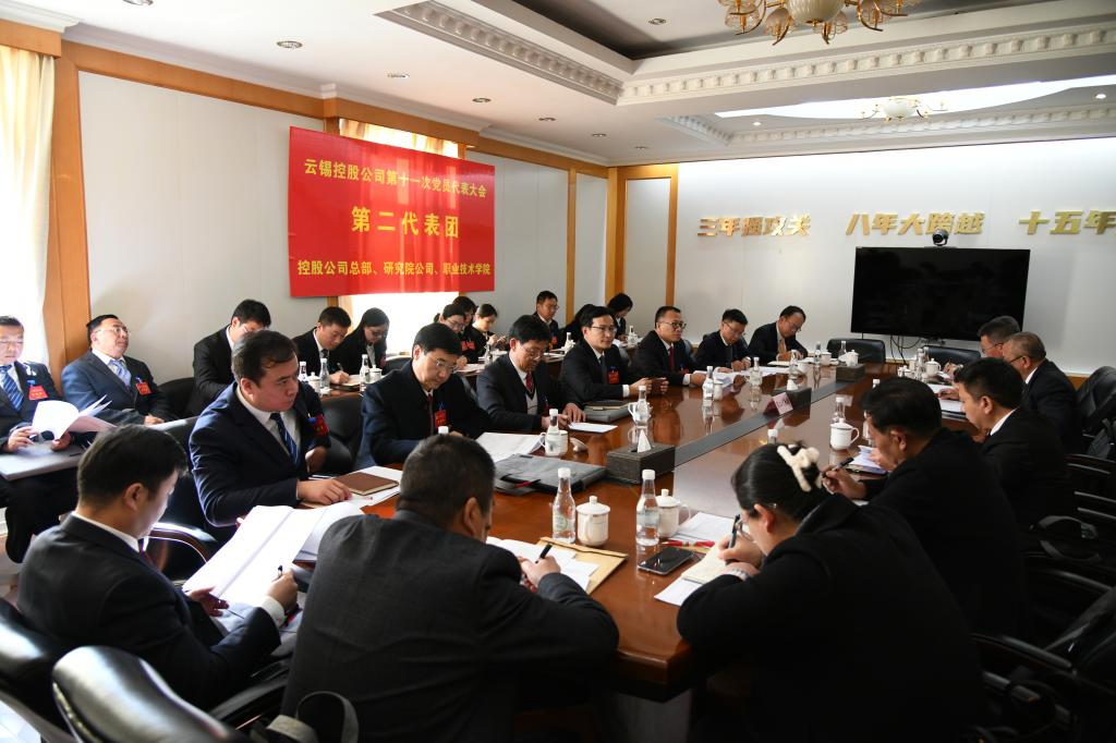 由控股公司總部、研究院公司、職業技術學院、澳洲公司組成的云錫控股公司第十一次黨員代表大會第二代表團,充分履行代表權利和義務,以飽滿的政治熱情和高度負責的態度,暢談體會、建言獻策、凝聚共識、共謀發展。控股公司黨委副書記、副董事長、總經理韓守禮,黨委副書記、工會主席劉俊,黨委常委、副總經理宋興誠參加討論,聽取黨員代表意見建議。