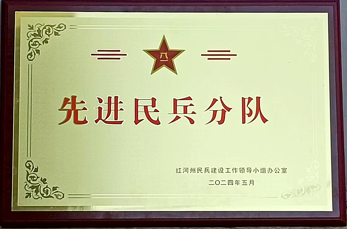 5月22日,紅河州人民政府、云南省蒙自軍分區組織召開紅河州州級基干民兵集合點驗大會,對2023年度州級基干民兵先進集體和個人進行表彰。控股公司作為唯一受表彰的先進集體被評為紅河州“民兵工作先進單位”,紅河州民兵應急營二連(云錫民兵)被評為“先進民兵分隊”,楊德高、黃永國、李翔、保城4人榮獲“優秀民兵”稱號。