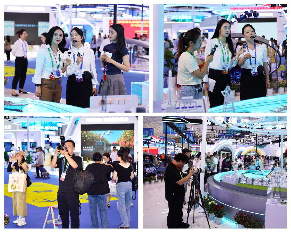 七彩云端、云南網(wǎng)、紅河融媒體及各類自媒體記者相繼到訪,或緊握穩(wěn)定器移動攝像,給云錫展臺來個富有動感的特寫;或手持話筒,耐心聆聽解說員娓娓道來;或找準(zhǔn)心儀的角度,按下快門,為美好瞬間定格……