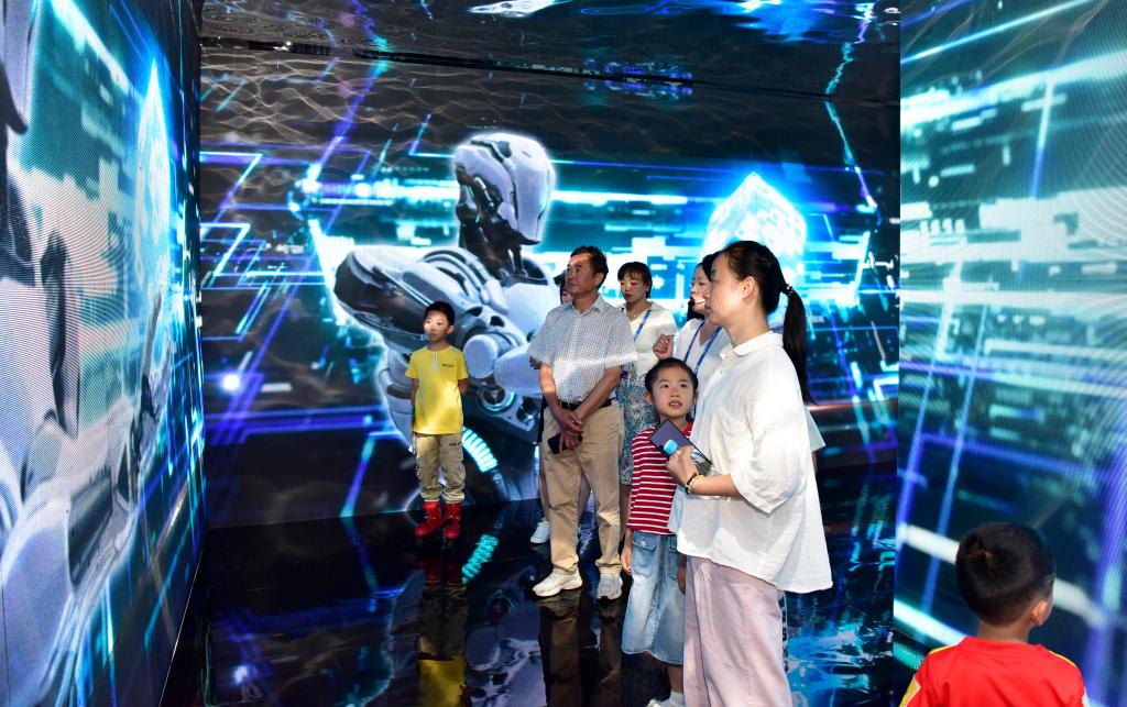 “小朋友,你們知道錫和銦這兩種金屬嗎?它們和我們的生活是息息相關(guān)的。我們穿的衣服、家里的電視機(jī)等等都離不開錫和銦。”“大家看到的‘錫銦創(chuàng)新之城’里,天上的飛機(jī)、路上的汽車、海里的航母,都有錫銦的身影。”時值暑假,家長攜萌娃相繼“上線”,被云錫展臺具像化的模型和視頻演示所吸引,在互動玩耍中學(xué)習(xí)知識、增長見識。