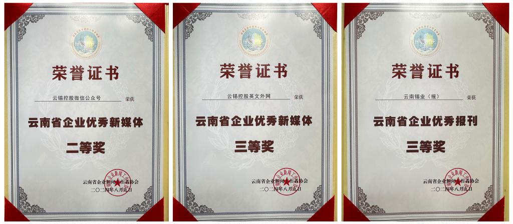 8月9日,云南省企業(yè)新聞工作者協(xié)會2024年會暨“兩優(yōu)”表彰會在“中國第一根電纜”誕生地——昆明電纜集團(tuán)召開。云錫控股微信公眾號、英文外網(wǎng)分別榮獲云南省企業(yè)優(yōu)秀新媒體二等獎(jiǎng)和三等獎(jiǎng),《云南錫業(yè)》報(bào)榮獲云南省企業(yè)優(yōu)秀報(bào)刊三等獎(jiǎng)。