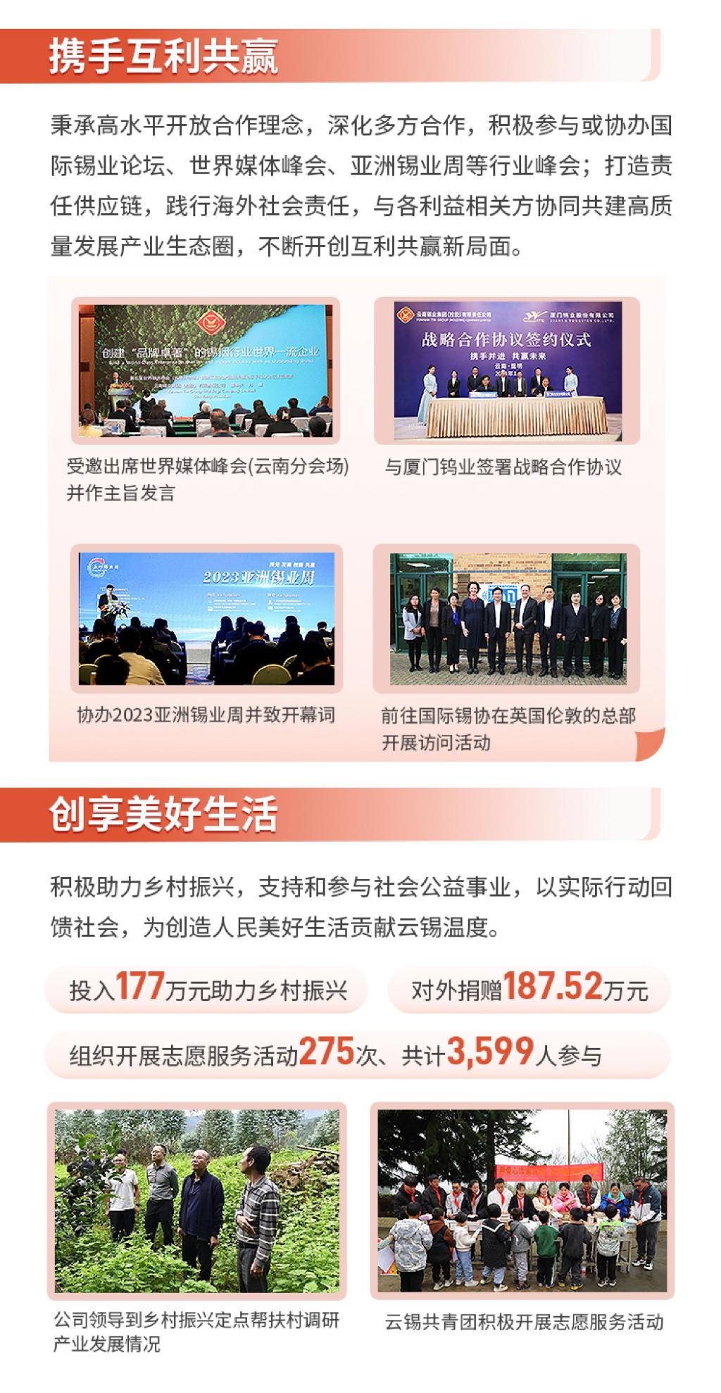 9月29日,《云南錫業(yè)集團(tuán)(控股)有限責(zé)任公司2023年社會(huì)責(zé)任(ESG)報(bào)告》正式發(fā)布,這是云錫控股公司發(fā)布的第二份社會(huì)責(zé)任報(bào)告。報(bào)告生動(dòng)展示了2023年公司在經(jīng)濟(jì)、環(huán)境、社會(huì)、治理、價(jià)值創(chuàng)造等方面的ESG實(shí)踐與績(jī)效,讓我們通過(guò)一圖讀懂的方式一起來(lái)了解。