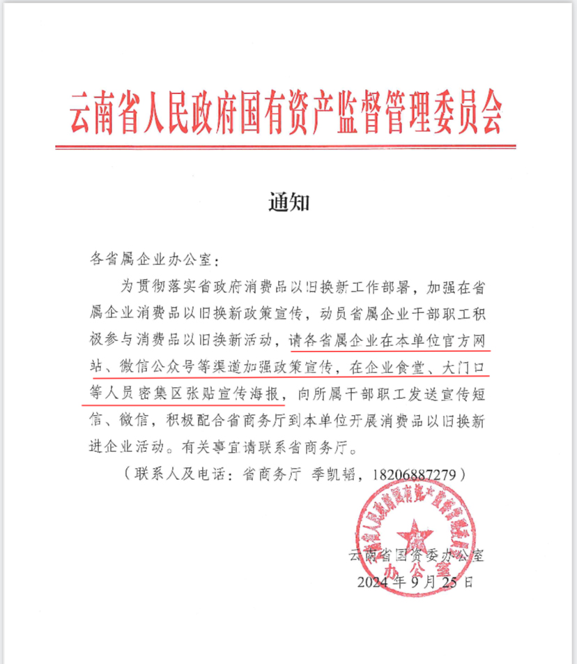 省國資委關(guān)于宣傳消費(fèi)品以舊換新工作的通知