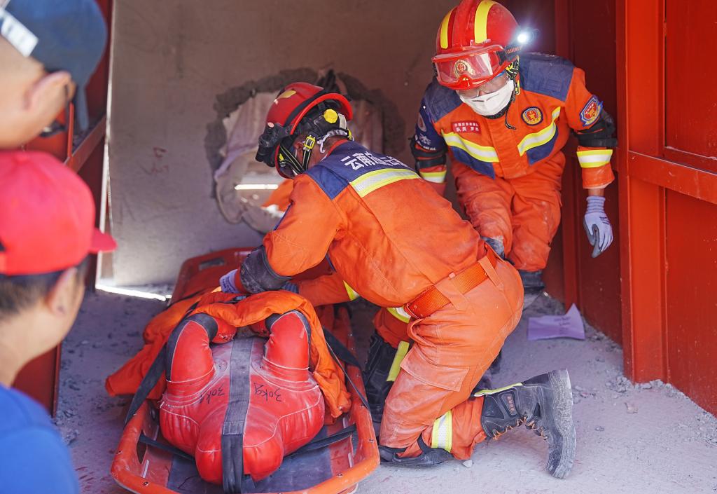 在地震災(zāi)害被困人員搜救處置項(xiàng)目中,選手仿佛置身于真實(shí)的地震現(xiàn)場(chǎng),配合默契,搬運(yùn)設(shè)備、設(shè)置支護(hù)、鑿巖穿孔、全力搜救……每一個(gè)環(huán)節(jié)都緊張有序,團(tuán)隊(duì)協(xié)作和應(yīng)急處置能力得到了充分體現(xiàn),他們用實(shí)際行動(dòng)詮釋了什么是責(zé)任與擔(dān)當(dāng)。