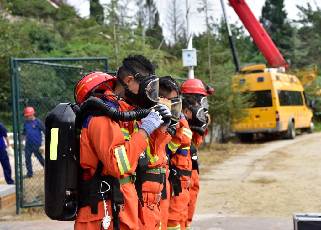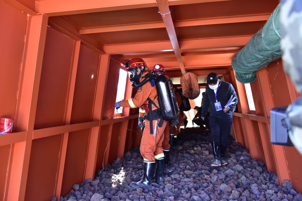 在煤與瓦斯突出事故處置、礦山冒頂事故處置項(xiàng)目中,面對(duì)模擬事故場(chǎng)景,選手沉著冷靜,按照應(yīng)急預(yù)案,迅速采取措施,以果斷決策和專(zhuān)業(yè)技能維護(hù)礦工生命安全。