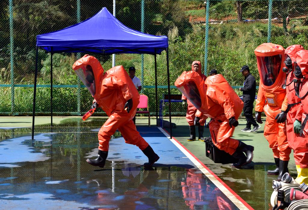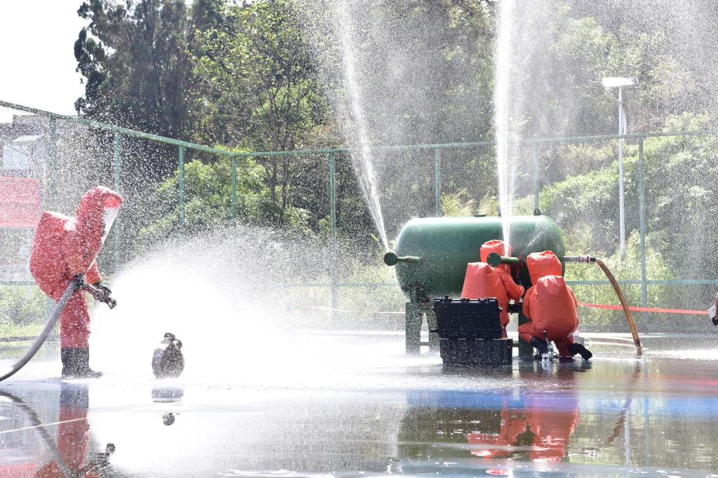 在危險(xiǎn)化學(xué)品工藝管線泄漏處置項(xiàng)目中,選手臨危不懼,迅速穿戴防護(hù)裝備,準(zhǔn)確找到泄漏點(diǎn),有序進(jìn)行緊急封堵,有效防止事故擴(kuò)大和次生事故發(fā)生。