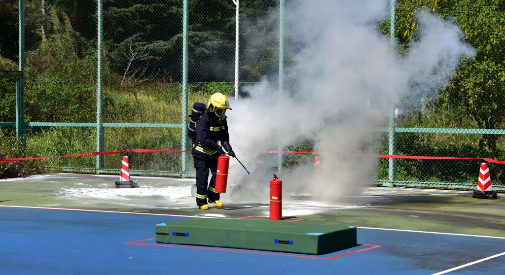 在電氣火災(zāi)處置項(xiàng)目中,選手熟練運(yùn)用消防設(shè)備,反應(yīng)速度快,滅火技巧準(zhǔn),充分展現(xiàn)專(zhuān)業(yè)應(yīng)對(duì)能力。