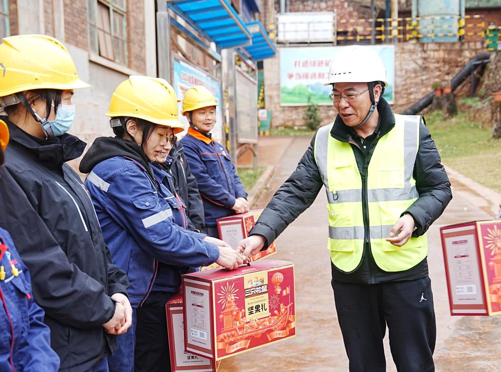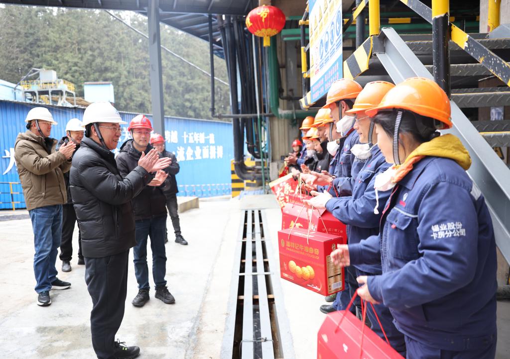 在大屯錫礦選礦車(chē)間氧化礦工段,孫勇與當(dāng)班職工一一握手、親切交談,感謝大家一年來(lái)的辛勤付出和默默奉獻(xiàn),勉勵(lì)大家要切實(shí)保證安全、高效、穩(wěn)定生產(chǎn),以實(shí)干實(shí)績(jī)?yōu)榘倌暝棋a再創(chuàng)新輝煌作出新貢獻(xiàn)。