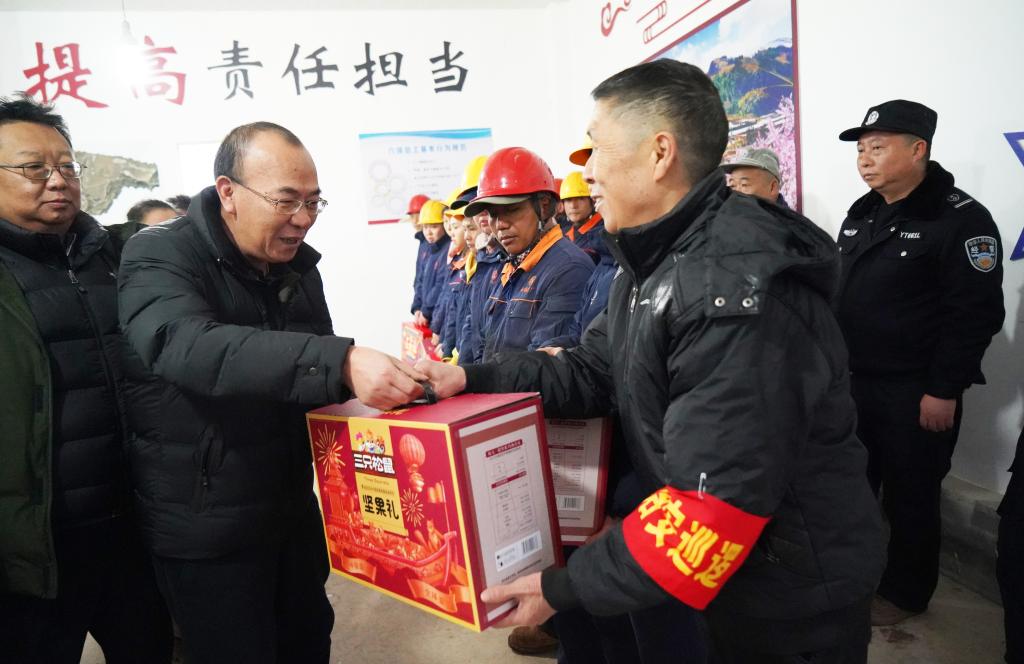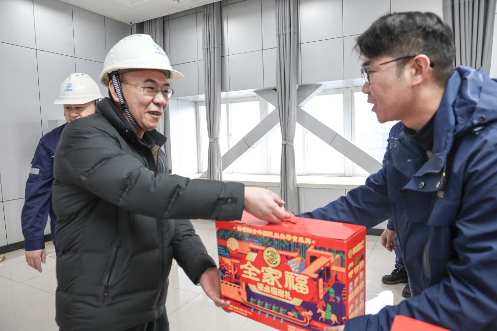 在老廠分公司背陰山?jīng)_尾礦庫(kù)回采再選工業(yè)實(shí)驗(yàn)基地,孫勇看望慰問(wèn)值班值守人員,向大家的堅(jiān)守和付出表示感謝,叮囑大家站好崗、履好責(zé),祝福大家新春快樂(lè)。(李華為)