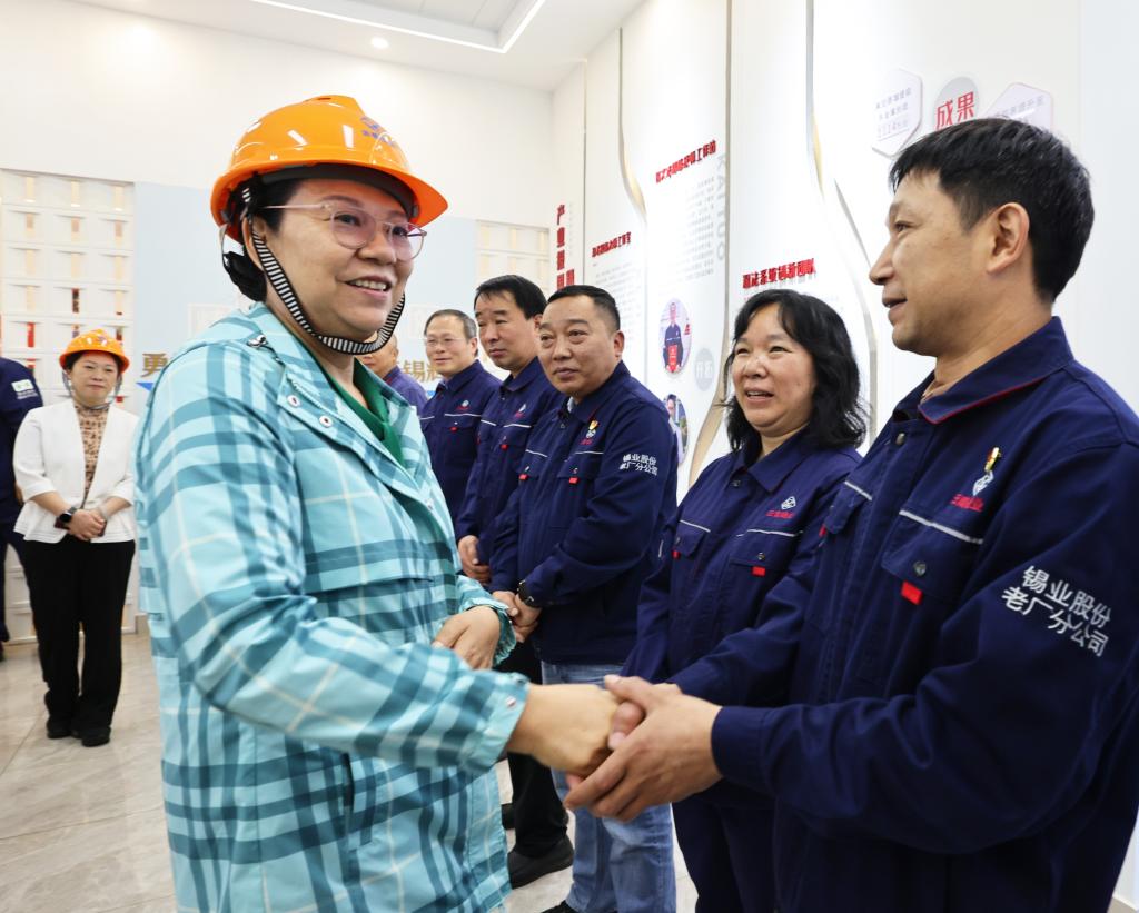 王樹芬先后深入智慧運營中心、陳坤勞模創(chuàng)新工作室、鄭飛大師工作室,了解工會政治作用發(fā)揮、組織建設(shè)、發(fā)揮產(chǎn)業(yè)工人骨干作用以及學(xué)習(xí)宣傳工會法等情況,聽取云錫貫徹實施工會法有關(guān)情況匯報,并與云錫勞模工匠及先進(jìn)工作者進(jìn)行面對面交流,收集對貫徹實施工會法方面的意見建議。