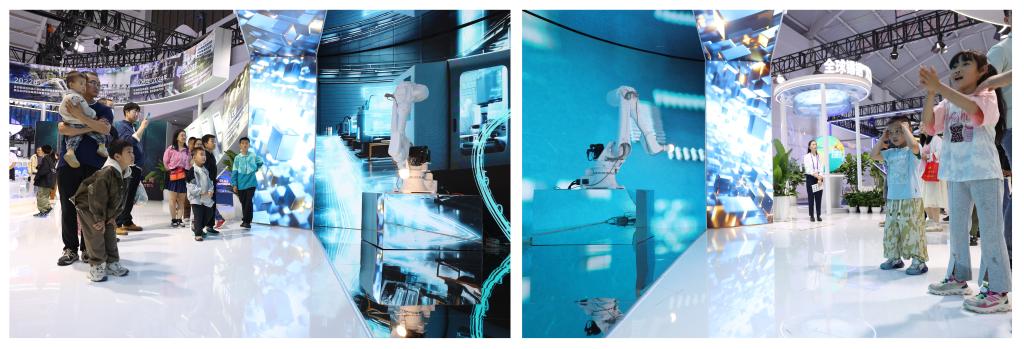 科技互動嘆為觀止。作為云錫展臺的“實力擔(dān)當”,XR算力探秘空間前總是排起長龍。伴隨著充滿節(jié)奏感的金屬音效,機械臂與視頻聯(lián)袂演繹從礦石到芯片的錫銦“智造”全流程,讓觀眾直呼“顛覆認知”,紛紛感嘆:“原來手機里的每一個觸點都有錫的貢獻!”