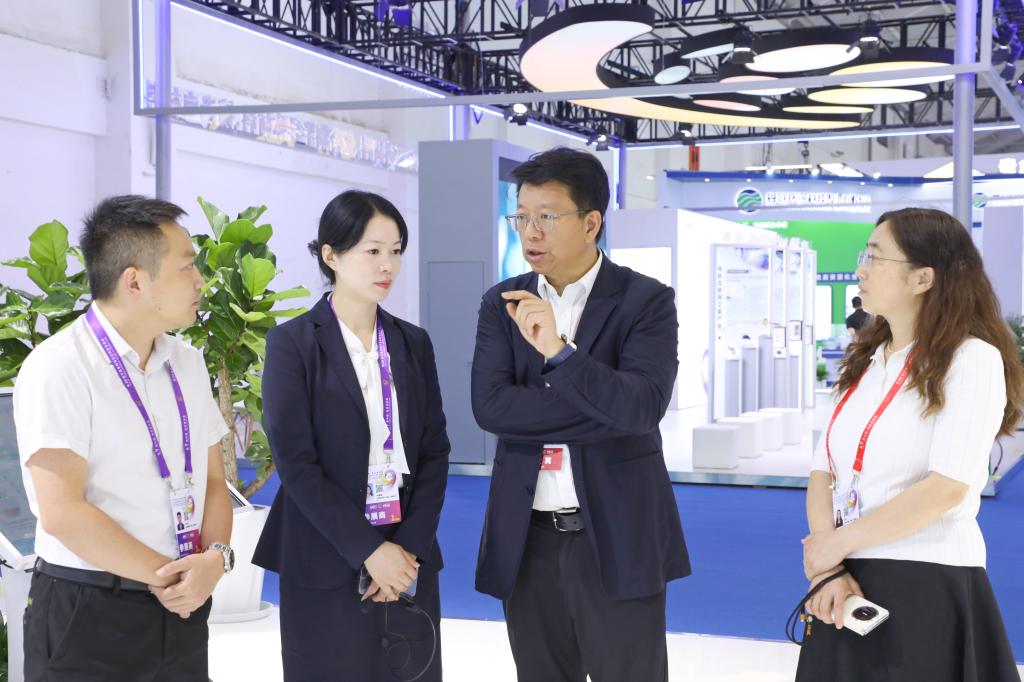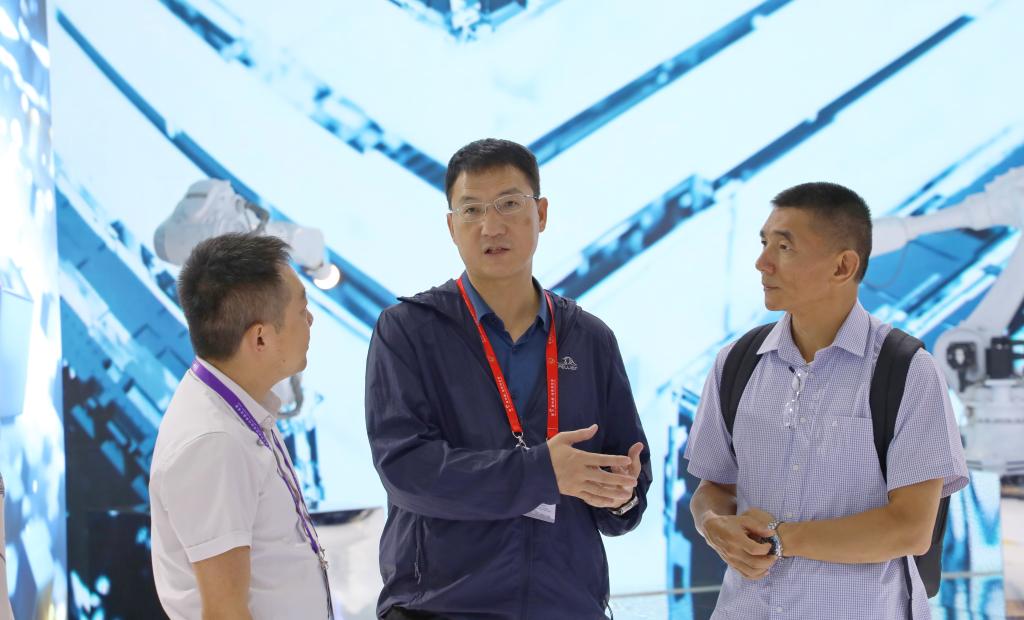 控股公司副總經(jīng)理李季,控股公司領(lǐng)導(dǎo)楊奕敏、外部董事周建國到云錫展臺觀展指導(dǎo)。