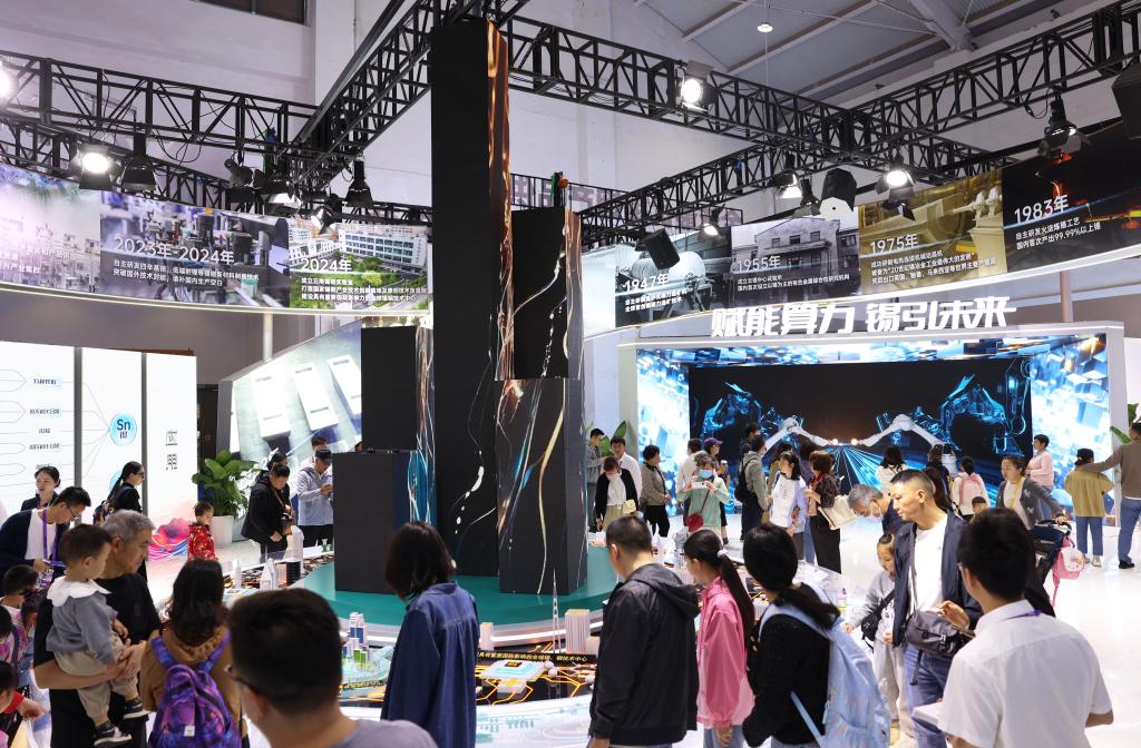 懸浮環(huán)繞的科技軸線、“芯聯(lián)萬物”的創(chuàng)新沙盤、沉浸交互的XR算力探秘空間,過去、現(xiàn)在、未來,科技創(chuàng)新與星爍錫銦碰撞的創(chuàng)意展陳……云錫展臺化身南博會“流量磁場”,錫銦科技之光持續(xù)閃耀。