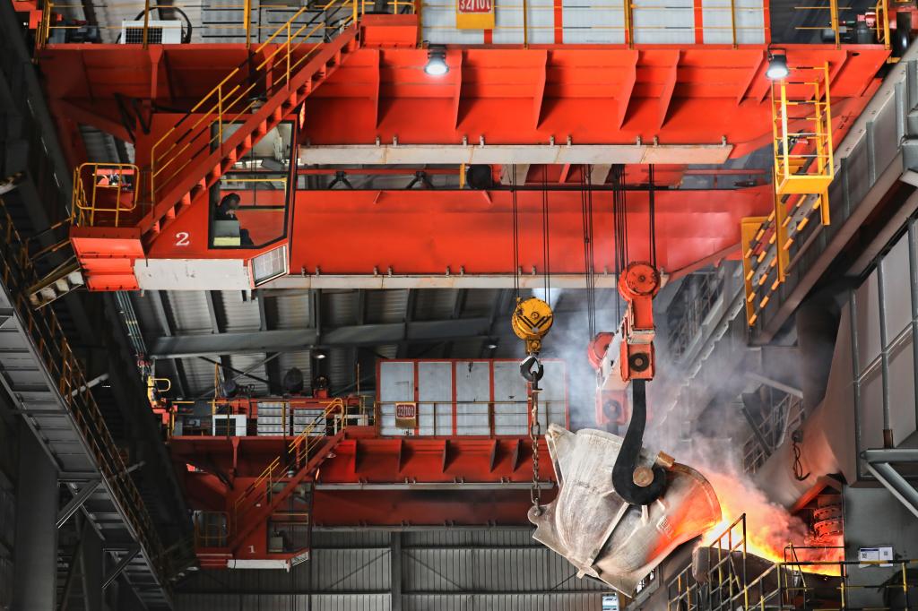頂吹爐液體渣吊投進(jìn)入煙化爐 彭鑫 攝