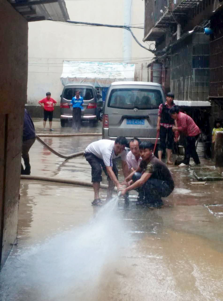搶險中,物管人員顧不上全身濕透,奮力排澇,經過兩小時的努力,基本清除積水,清理淤泥面積約2000平方米,有效清除因水淹和淤泥給住戶生活造成的不便,贏得了住戶們的交口稱贊。