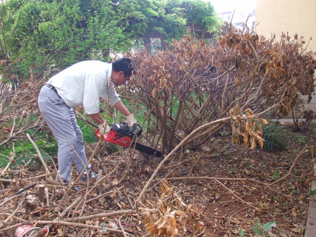期間,昆物管組織全體員工用砍刀、電鋸等器具清除了被年初大雪凍死的灌木叢,共修剪轄區樹木300余棵,清除灌木叢4000余平方米,清運垃圾40余車,配置保安服裝52套,監督、指導安裝云錫花園太陽能700余臺。