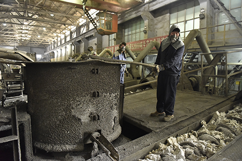 精煉車間職工正在工作
