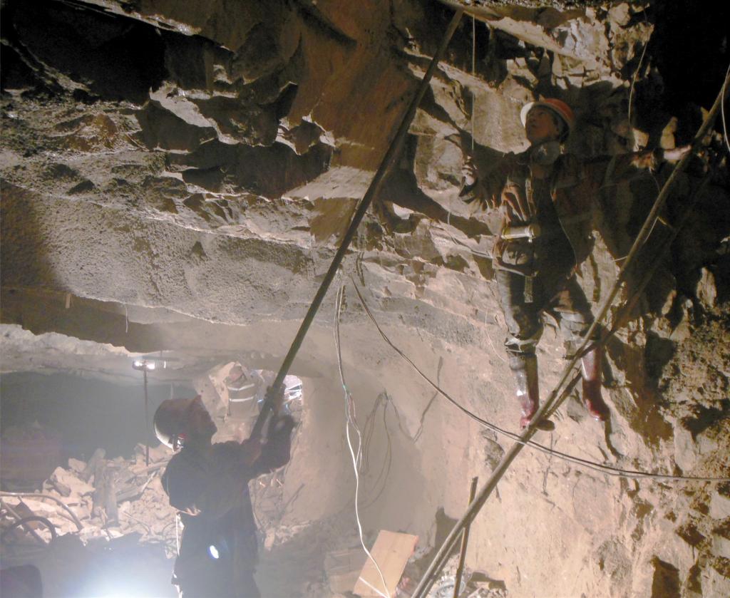此項工程處于1950中段運輸主巷,施工過程中,由于過往的人員和運輸車輛頻繁,給施工帶來諸多不便的同時,還存在一定的安全隱患。為確保工程施工進度和安全,二工區指派生產副區長及一名安全值班長現場指導工作,在不影響1950中段主巷運輸的前提下,保質、保量、保安全地順利完成了工程施工任務。工程完成后,將交由四川茂源公司用于安裝天井鉆機,向下施工三個鉆孔至1800中段西凹南巷,解決西凹南巷生產區域通風困難的問題。