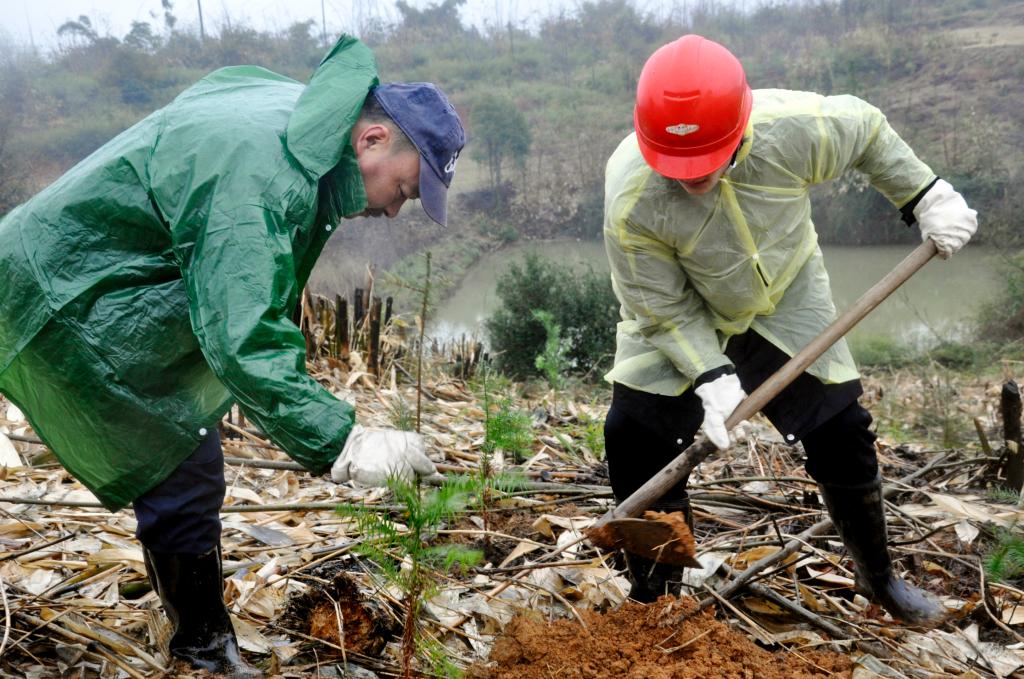 3月1日上午,云湘礦冶公司領導班子成員和機關、部分工段人員,以及新進公司的大中專生等,120余人來到廠區南面圍墻外下渡村山坡,與下渡村村委的群眾一道植樹造林。經過2個多小時的勞動,共種植7000多株沙樹苗。