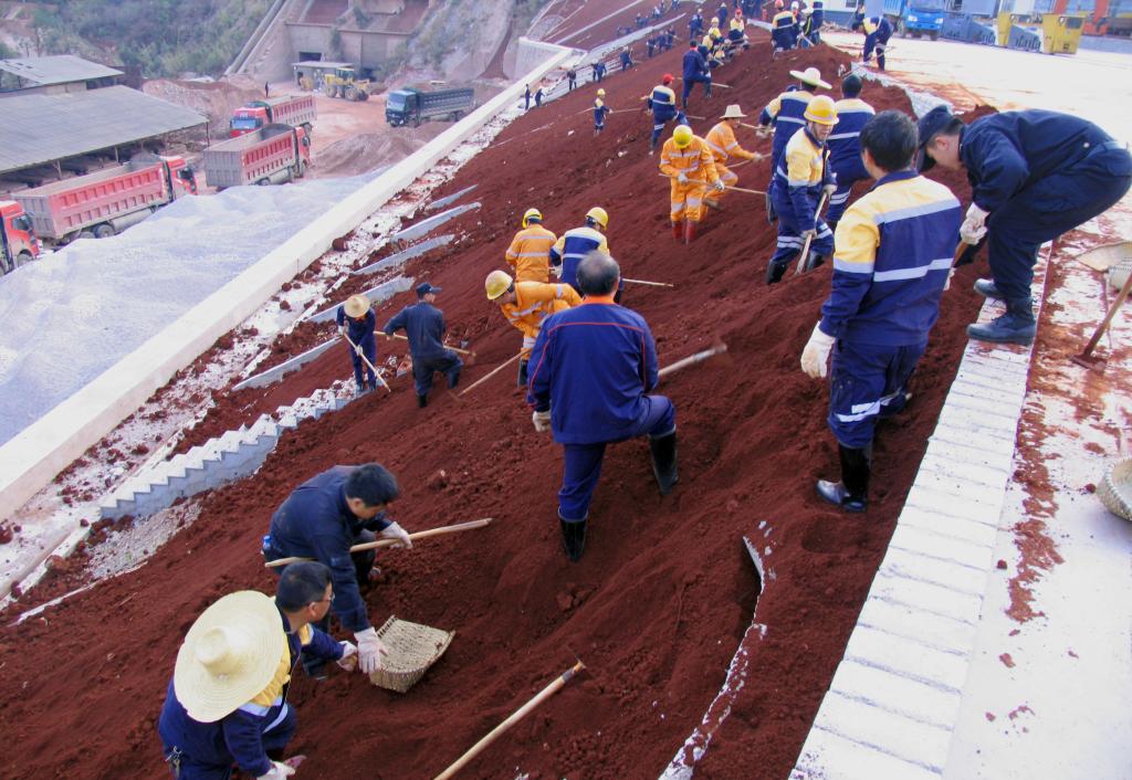 松礦1360新開的綠化帶在陡坡上,僅靠后勤工段現在的綠化人員工作,綠化前期的填土工期將會很長。為加快工程進度,確保綠化工作早日完成,礦部決定從各單位抽調人員突擊勞動,最終四個單位聯手大戰填土工程。