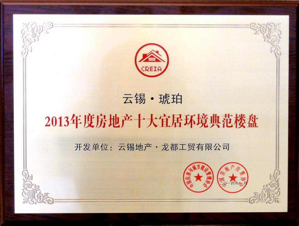 1月18日,第七屆品牌中國?中國房地產/中國工程建設行業(三亞)年會在海南三亞舉行。云錫地產公司攜自主開發的“云錫?琥珀”項目參加評選。經過來自全國各行業專家和業內精英組成的評委層層篩選,“云錫?琥珀”項目憑借著獨特的“四大核心價值”榮獲了本次年會的“2013年度房地產十大宜居環境典范樓盤”榮譽稱號。