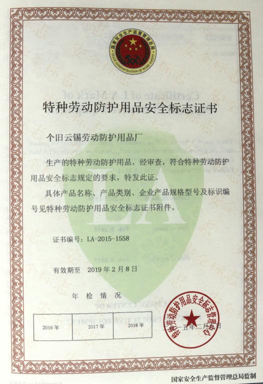 近期,云錫勞動防護用品廠取得國家《特種勞動防護用品安全標志證書》,成為云南省特種勞動防護用品生產企業中屈指可數的獲證企業。