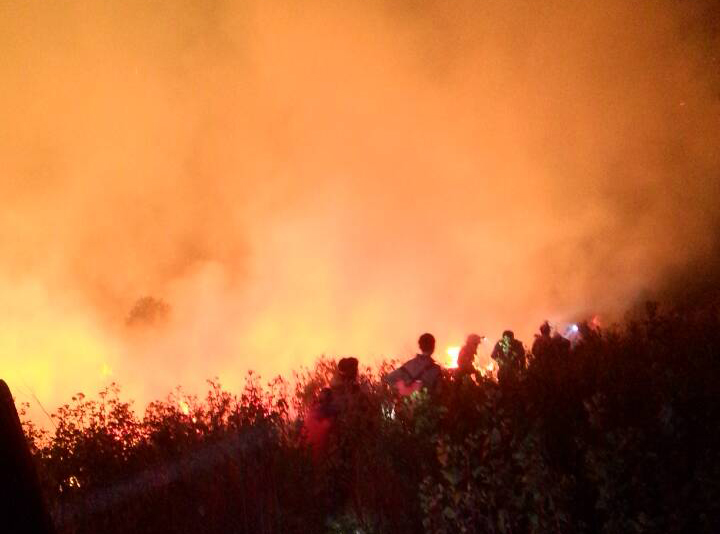 3月2日凌晨2點,松礦保衛科接到礦調度電話:1360基礎平臺坑口后面的甲變站周邊山上起火。保衛科迅速組織民警中隊、動運保衛股和一坑保衛股,共30余名經濟民警趕赴火災現場撲火,并配合個舊市森林防火指揮人員一路巡查火場。當晚山風較大,火勢蔓延速度很快,火災現場已有坑口組織趕到的職工和勞務派遣工10余人,分別帶著滅火器、鎬鋤、鐵鏟、拖把等正在撲火。大家根據火勢情況,在關鍵地段直接撲火,一會從中間穿插分兵合圍撲火,一會由兩邊合圍撲火;在火勢相對大,且容易蔓延的一邊派員加強防守及撲打,使火線不再繼續向外擴展。保衛科人員巡邏時意識到1360木材廠和危化倉庫受到山火威脅,及時組織保衛人員到場檢查消防設施,備好消防水管;在1360片區打開巡邏車廣播提醒住戶注意火情和濃煙,同時組織疏散人員30多人;通知提醒大屯液化站值守人員加強警惕和防范。