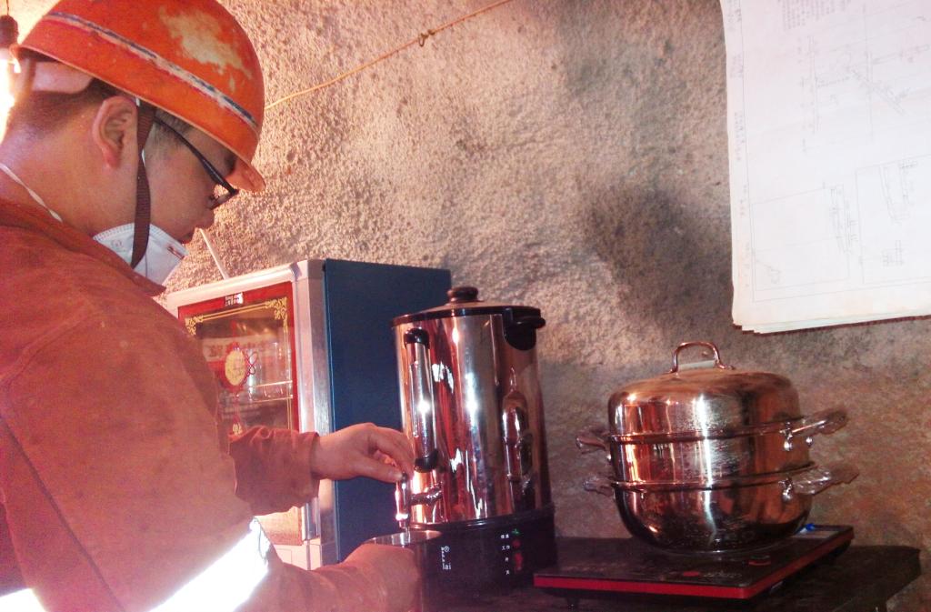 進入6月,天氣變得炎熱而悶燥,而且職工進坑上班都是比較繁重的體力勞動,出汗量較大,需要大量補充水分。對于一線工人來說,如果能在坑下喝上一杯熱茶水是一件多么溫馨和幸福的事情。工區想職工之所想,急職工之所急,在1570中段排班室“職工小家”配備了一只電熱開水桶、一個立式水杯儲藏消毒柜和一臺電磁灶,方便了職工在井下喝上熱茶水。