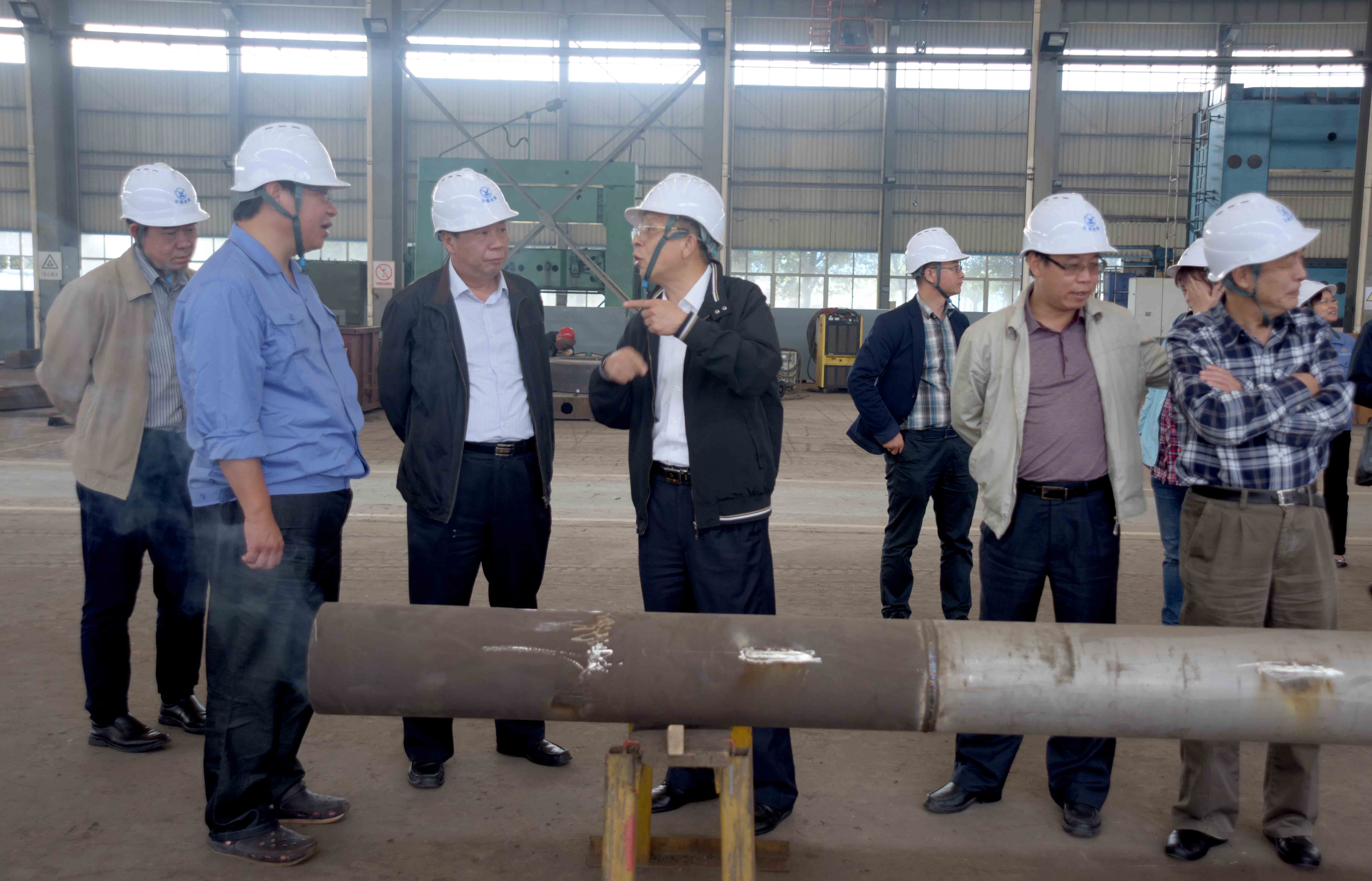 在機械公司,調研組就產品、設備和生產組織情況進行實地考察。丁學全肯定了機械公司所做的努力,認為機械公司在市場低迷的大背景下,需要從技術引進、技術合作方面轉型、跳脫出礦冶機械行業的限制、積極面對市場。