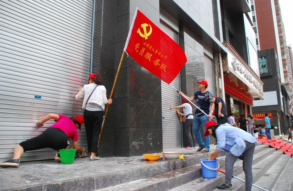 7月23日,建設集團公司黨委組織部分黨員團員到金湖明珠小區開展義務勞動,對小區內外環境衛生進行清理,踐行“兩學一做”服務生產,助力減虧增盈。