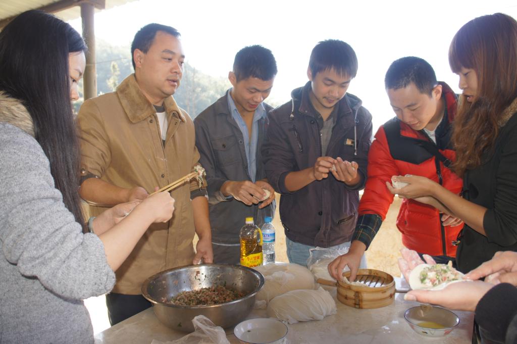 上午9點,在龍樹腳坑食堂,參加此次活動的20余名團員青年分工配合,和面、切面、搟面片、包餃子,一個個干得熱火朝天,不亦樂乎。經過兩個多小時的勞動,共包出1200多個餃子。雖然餃子有大有小形狀各異,還有的因為密封不嚴下水后就煮開了皮,但是看到剛剛出坑來的師傅們吃著自己親手包的熱騰騰的餃子,大家的心里充滿了團隊合作的快樂和服務他人的幸福感。