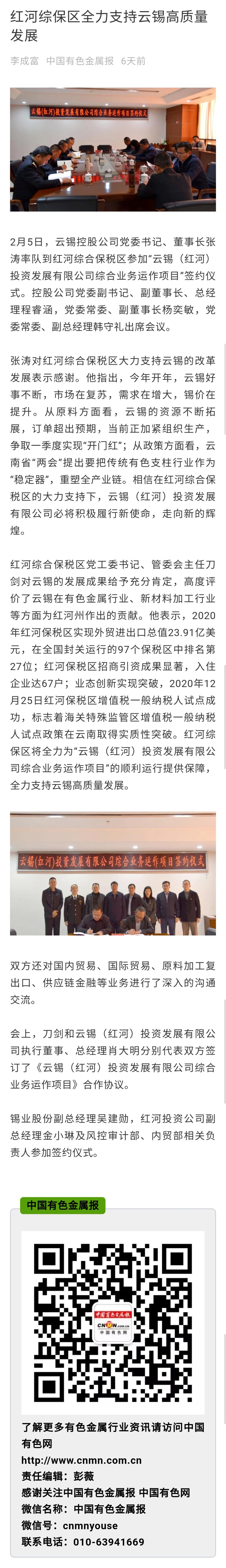 中國有色金屬報(bào):紅河綜保區(qū)全力支持云錫高質(zhì)量發(fā)展