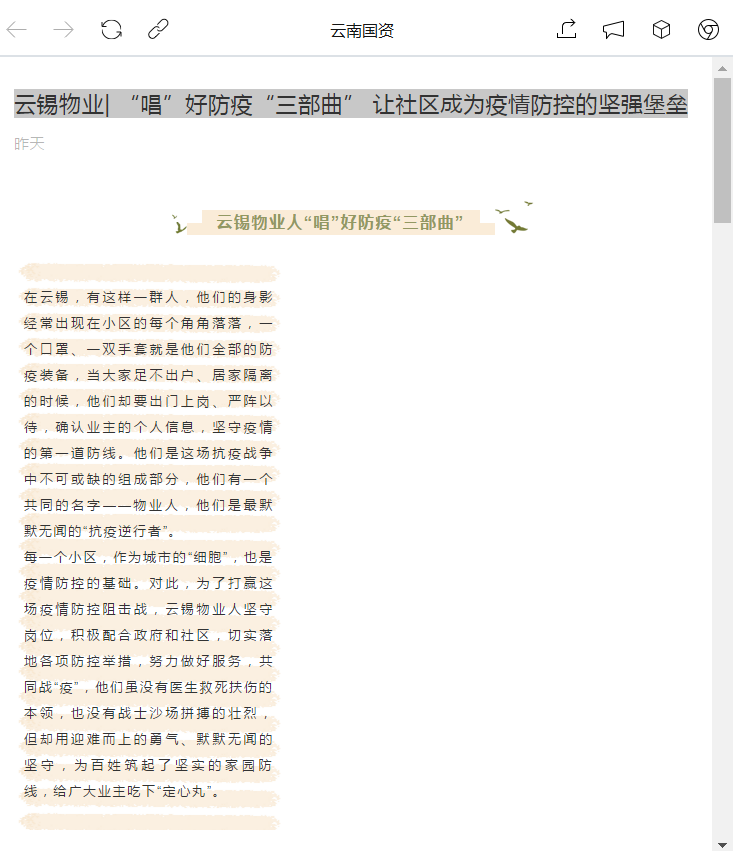 云錫物業(yè)人“唱”好防疫“三部曲”