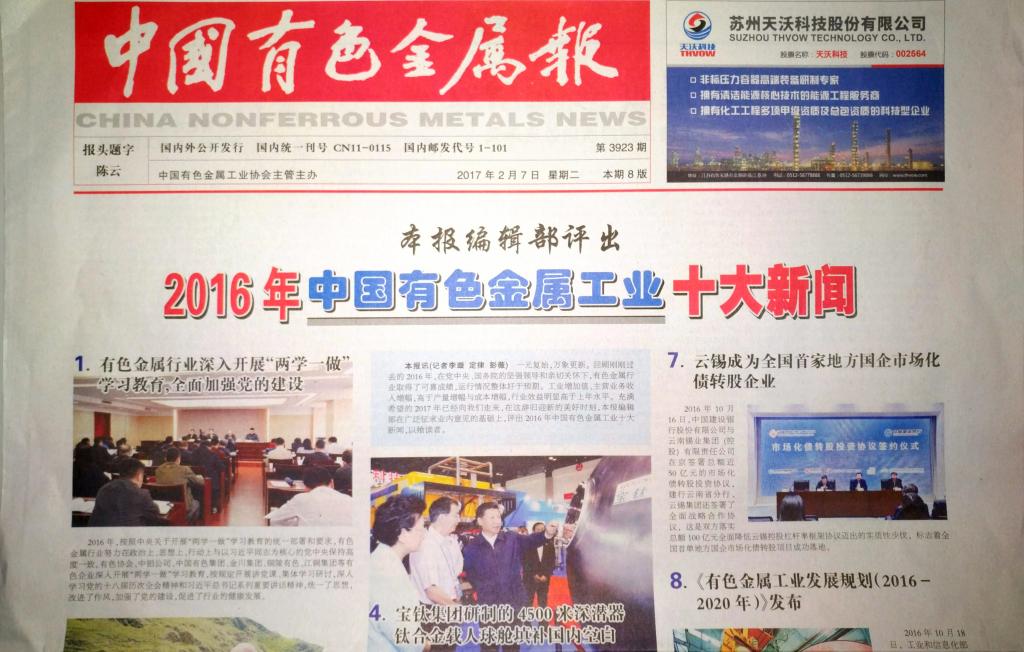 來源:中國有色金屬報 第3923期 8版2017年2月7日