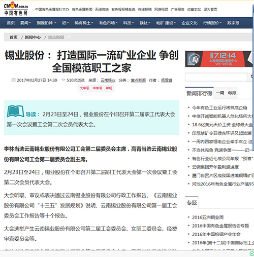 2月23日至24日,錫業(yè)股份在個(gè)舊召開第二屆職工代表大會第一次會議暨工會第二次會員代表大會。